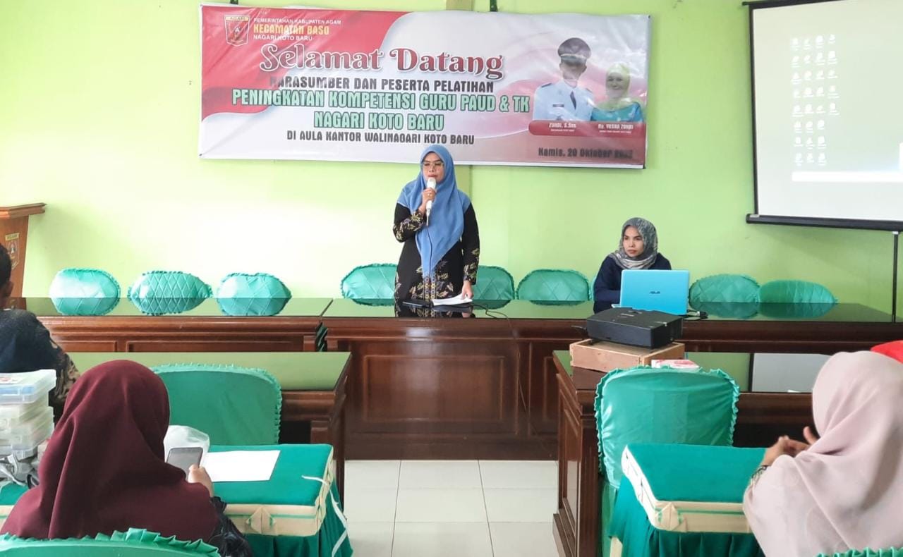 Pada Hari Kamis 20 Okober 2022 telah dilaksanakan Pelatihan Peningkatan Kompetensi Guru PAUD dan TK yang diikuti oleh seluruh guru PAUD dan TK di Nagari Koto Baru bertempat di Aula Kantor Walinagari Koto Baru.