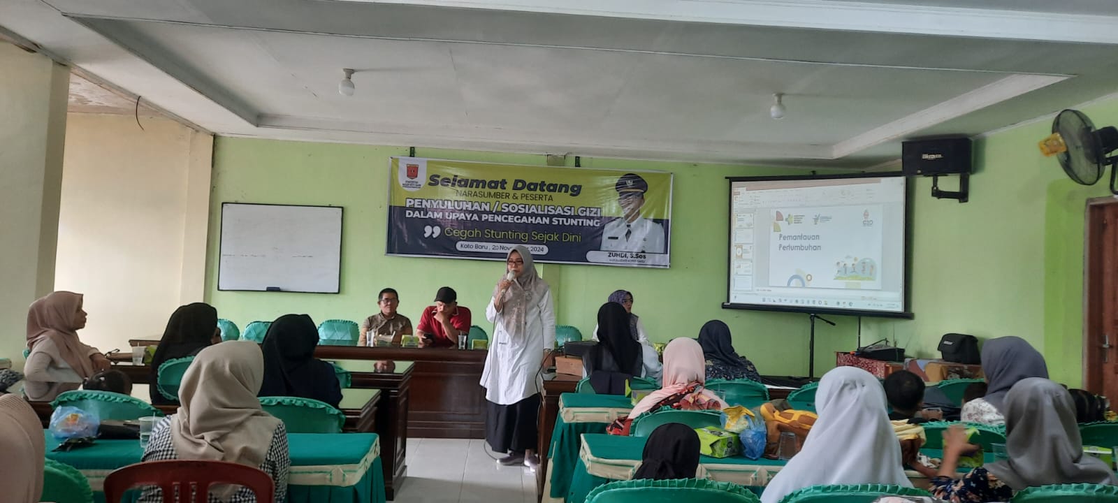 Pada hari Rabu tanggal 20 November 2024 telah dilaksanakan Sosialisasi/Penyuluhan Gizi dalam Upaya Pencegahan Stunting dengan narasumber dari Puskesmas Baso Ibu Mega Purnama,A.Md.Gz dan Ibu Meri Testi,A.Md Keb. Kegiatan dibuka langsung oleh Camat Baso yang diwakili Oleh Sekretaris Camat Bapak Effendi Idris dan dihadiri oleh Walinagari Koto Baru Bapak Zuhdi,S.Sos,Ketua Bamus diwakili oleh Bapak Abdul Karim,Ketua TP PKK Nagari Koto Baru diwakili oleh Sekretaris TP PKK Nagari Ibu Leni Kurniati,A.Md,Perangkat Nagari,Kader Posyandu, Ibu Hamil, Ibu Baduta dan Ibu Balita Nagari Koto Baru.
