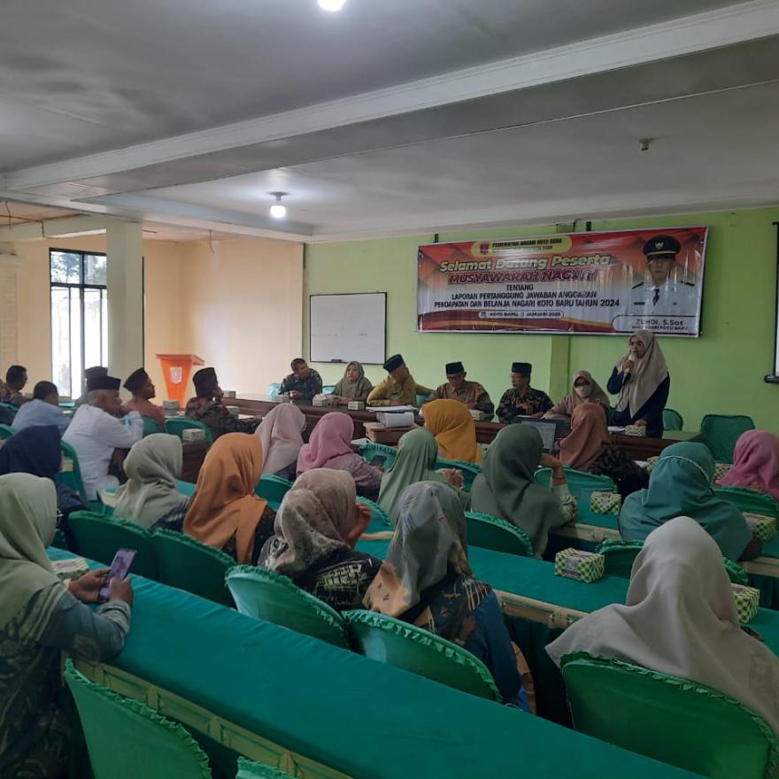 Adapun materi yang dibahas dalam musyawarah ini adalan Penyampaian Laporan Pertanggung Jawaban Realisasi APBNagari Koto Baru Tahun Anggaran 2024
