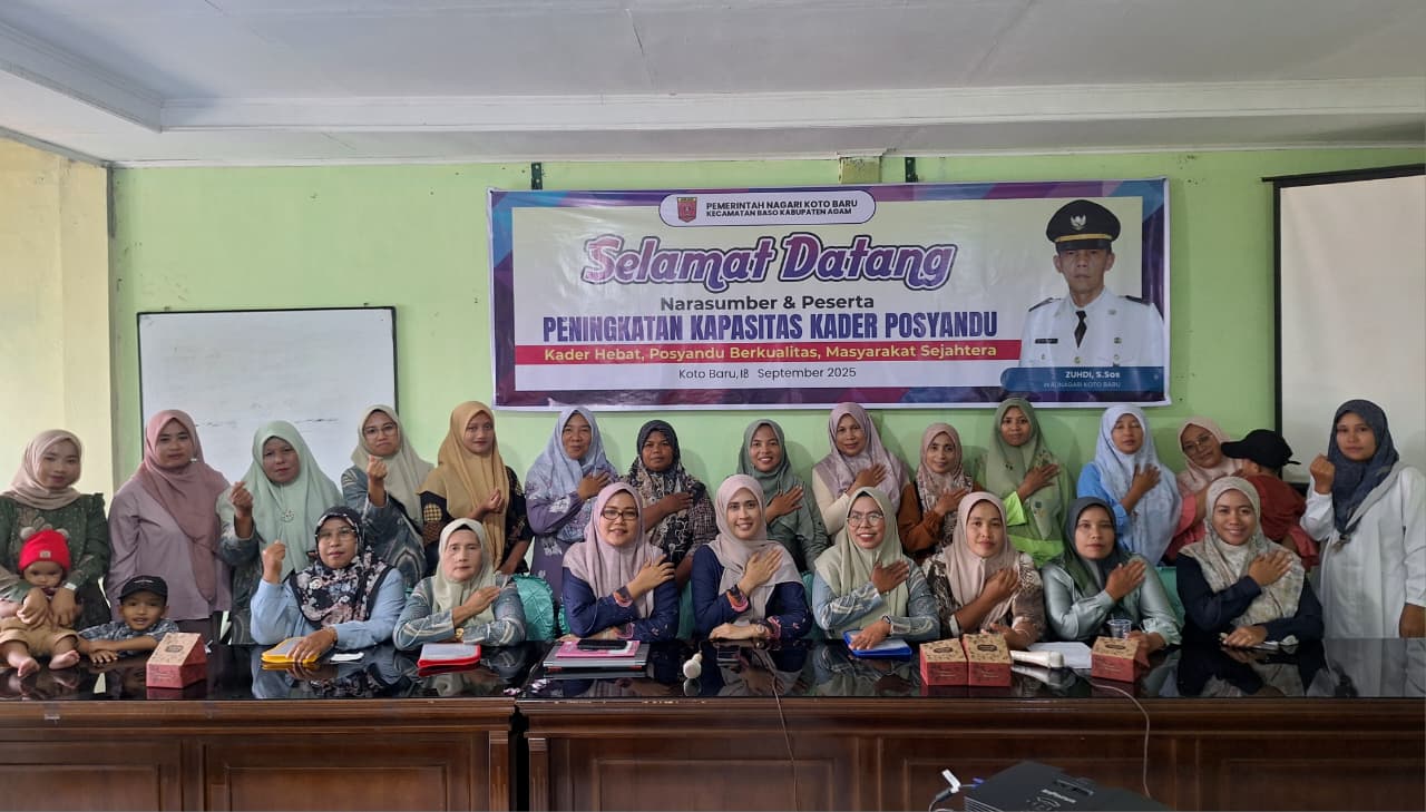 Pada hari Kamis tanggal 18 September 2025 telah dilaksanakan Peningkatan Kapasitas Kader Posyandu dengan Narasumber dari Puskesmas Baso Ibu Deane Nabila Putri,SKM dan Ibu Meri Testi,A.Md Keb yang dihadiri oleh Bamus Nagari Bapak Fachrizal Dt.Putiah, Walinagari Koto Baru diwakili Sekna Ibu Elvi Yenni,SE, perangkat nagari, dan Kader Posyandu Nagari Koto Baru.