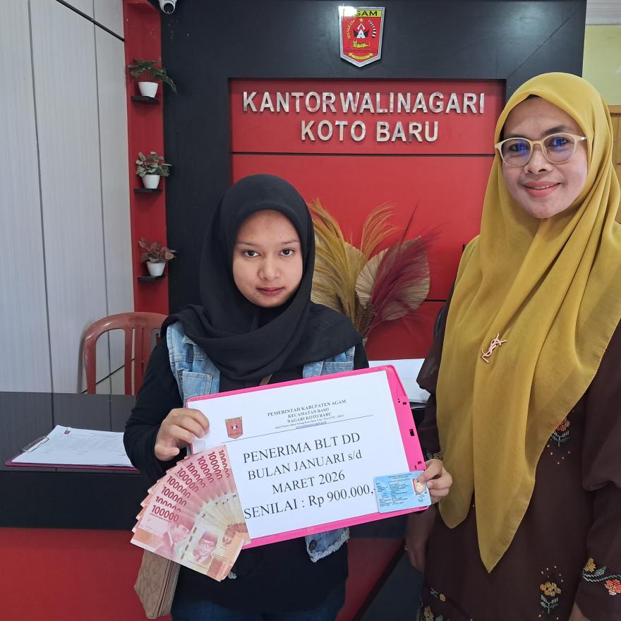 Penyaluran Bantuan Langsung Tunai (BLT) Dana Desa Tahun Anggaran 2026 bulan Januari s/d Maret pada hari Selasa tanggal 10 Maret 2026, Kepada 7 Orang keluarga penerima manfaat senilai Rp 300,000,- per Bulan dengan jumlah yang diterima KPM Rp 900,000,-